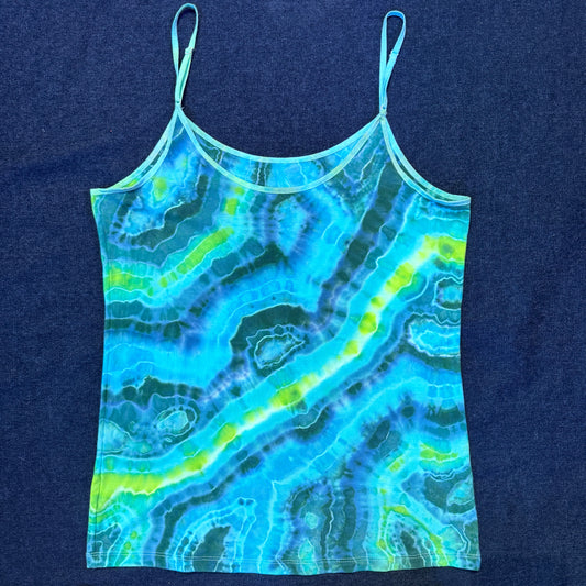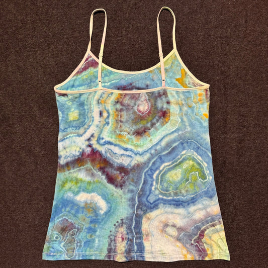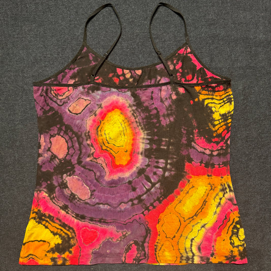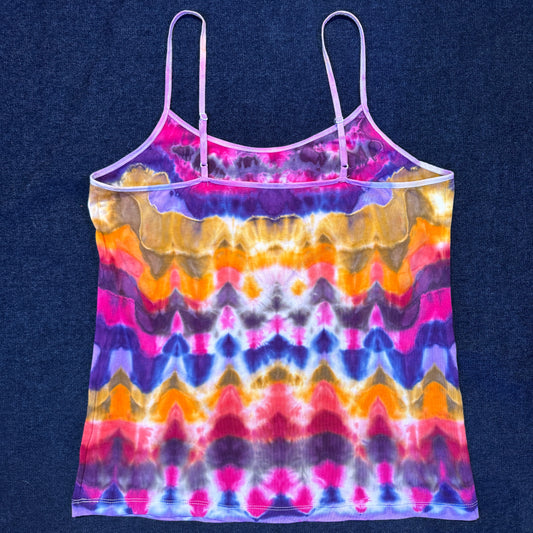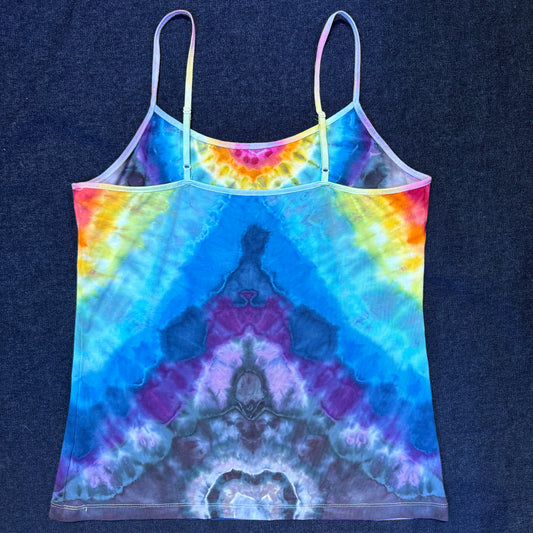 L - pink reverse dyed rainbow scrunch ladies vee tee