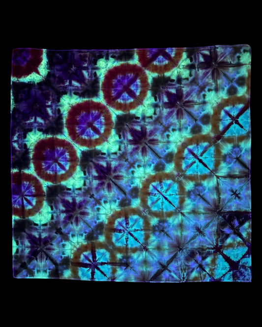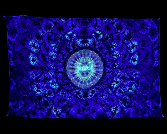 UV reactive navy/lime snow flower shibori large sized tapestry