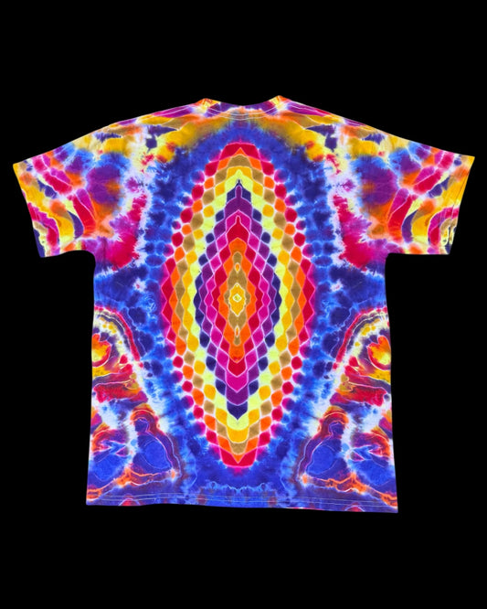 L - black opal ice dyed vee klink with mandala and klink spine tee
