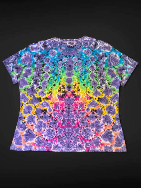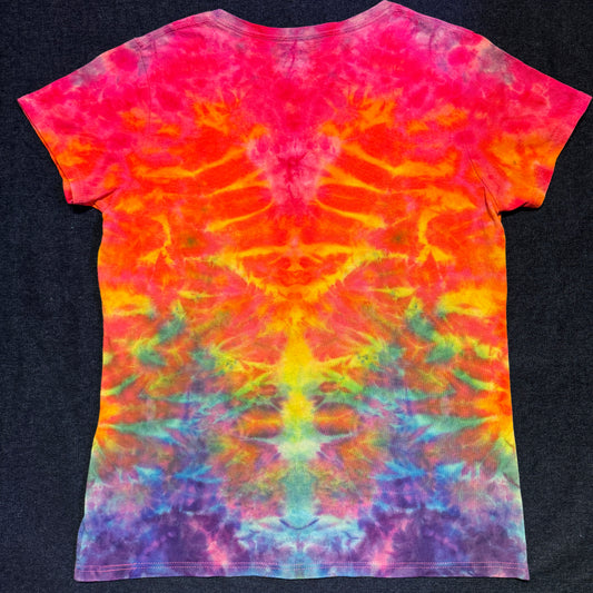 L - pink reverse dyed rainbow scrunch ladies vee tee