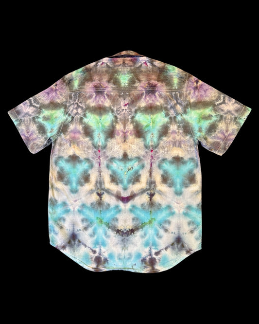 S - ladies’ fit ice dyed rainbow mirrored fan fold boxy cropped tee