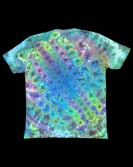 XL - ice dyed mirrored vertical cosmic rolled logo tee