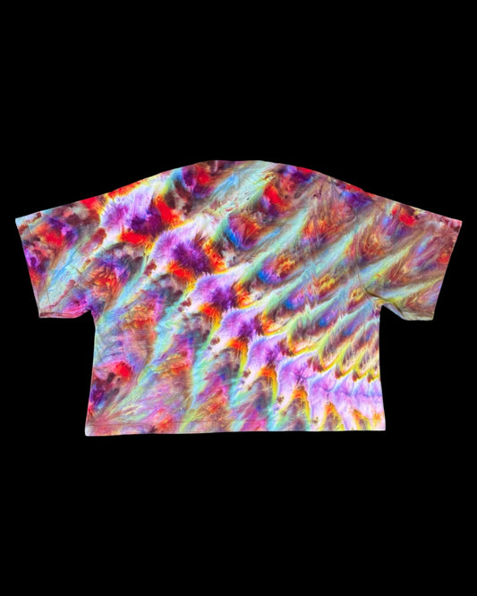 XL - ladies’ fit ice dyed rainbow cosmic roll boxy cropped tee