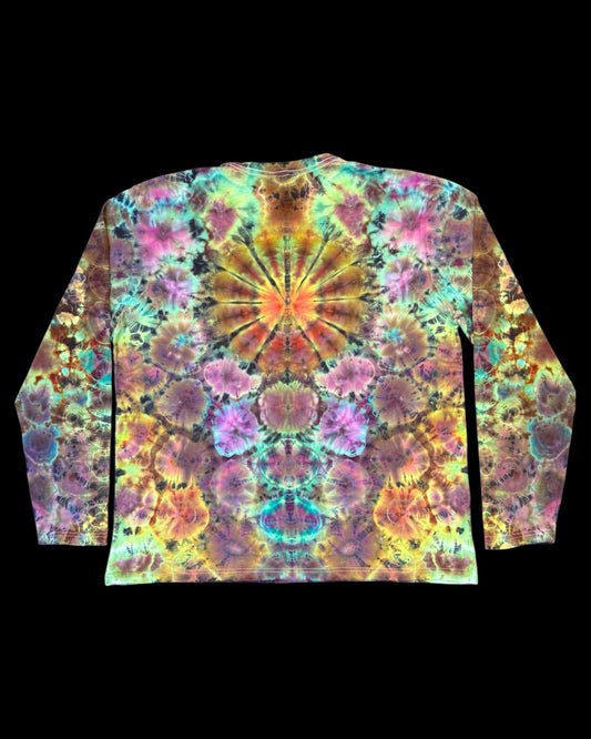 XL - ice dyed glowing mandala kenney style combo long sleeve tee