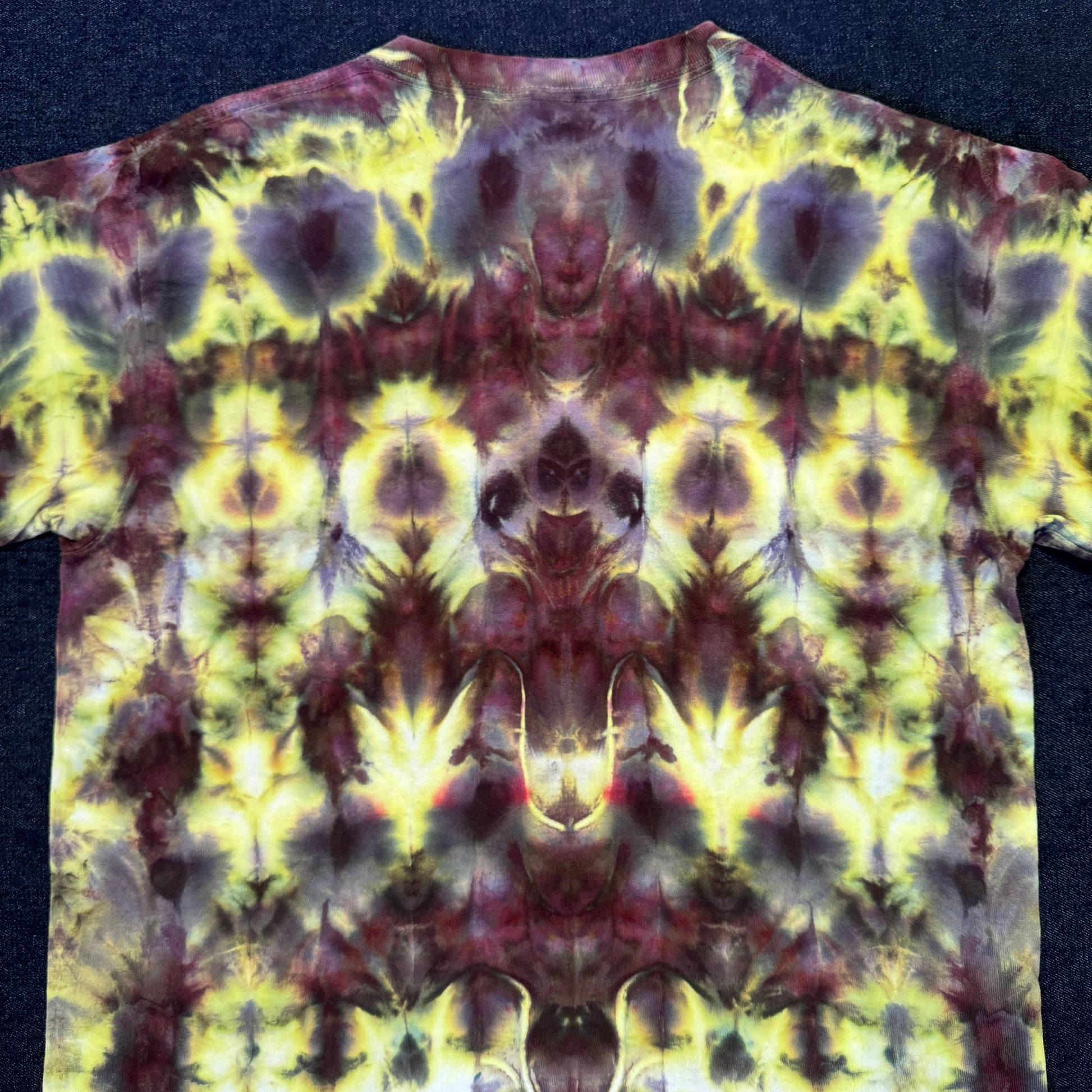 single color ice dyed tee in ‘moose’ which gives way to these glorious splits of color. this tie up really helps show the depth of the dye color. you know you’ve always wanted a ‘moose’, make this one yours.