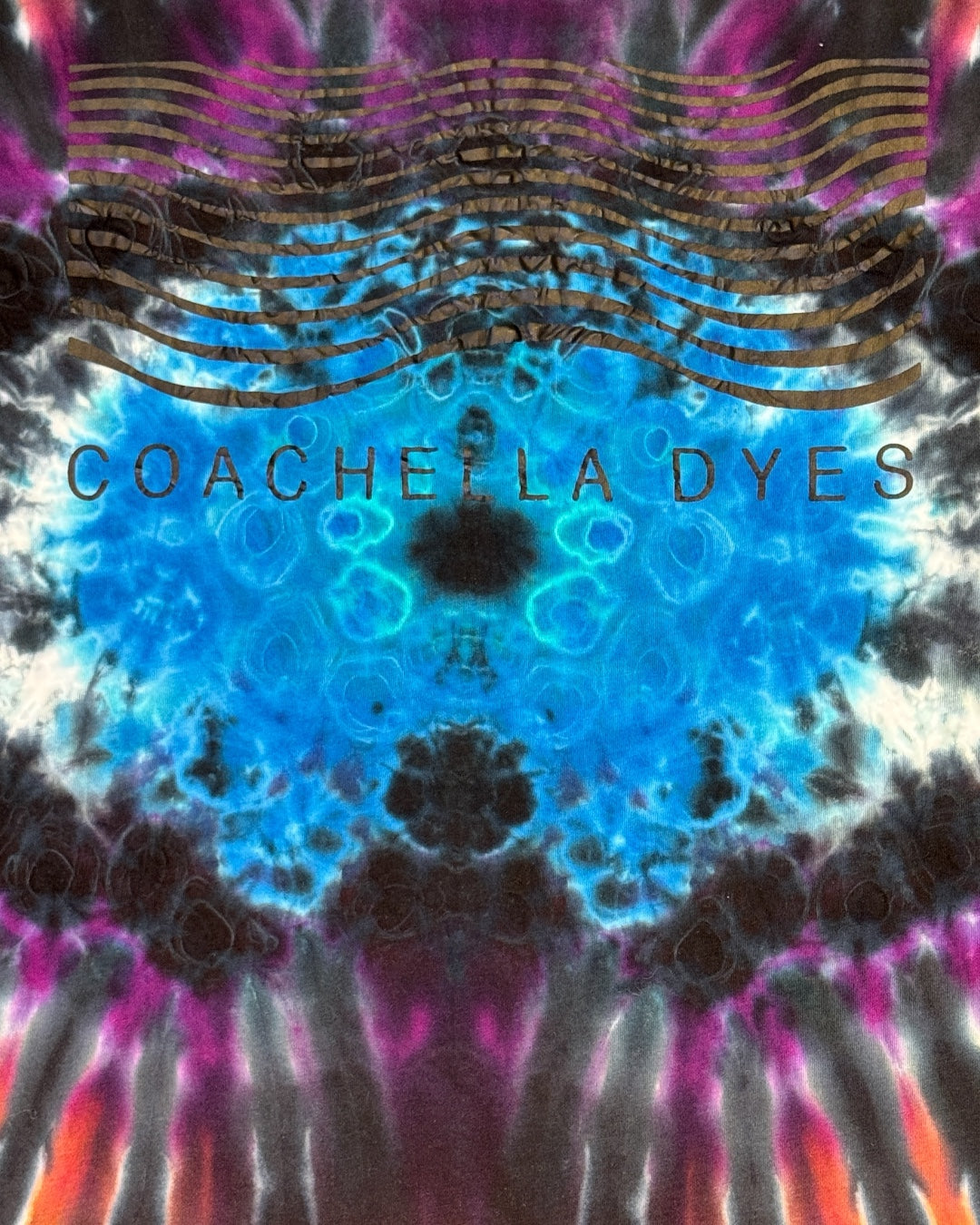 limited edition logo tee with a kenney style eye surrounded with blacked out rainbow pleats. this one will definitely help you keep those eyes on the prize. features a black coachella dyes logo on the upper back. 1/1